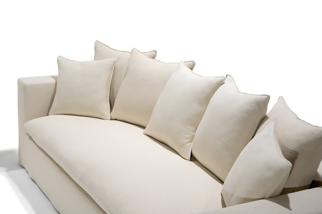 Le confort est assuré par de nombreux coussins indépendants, modulables selon les envies. Ils offrent une sensation enveloppante et accueillante au quotidien. Le canapé s’adapte aussi bien à un usage individuel qu’à des moments partagés. Lina incarne ainsi un équilibre entre simplicité, confort et élégance.