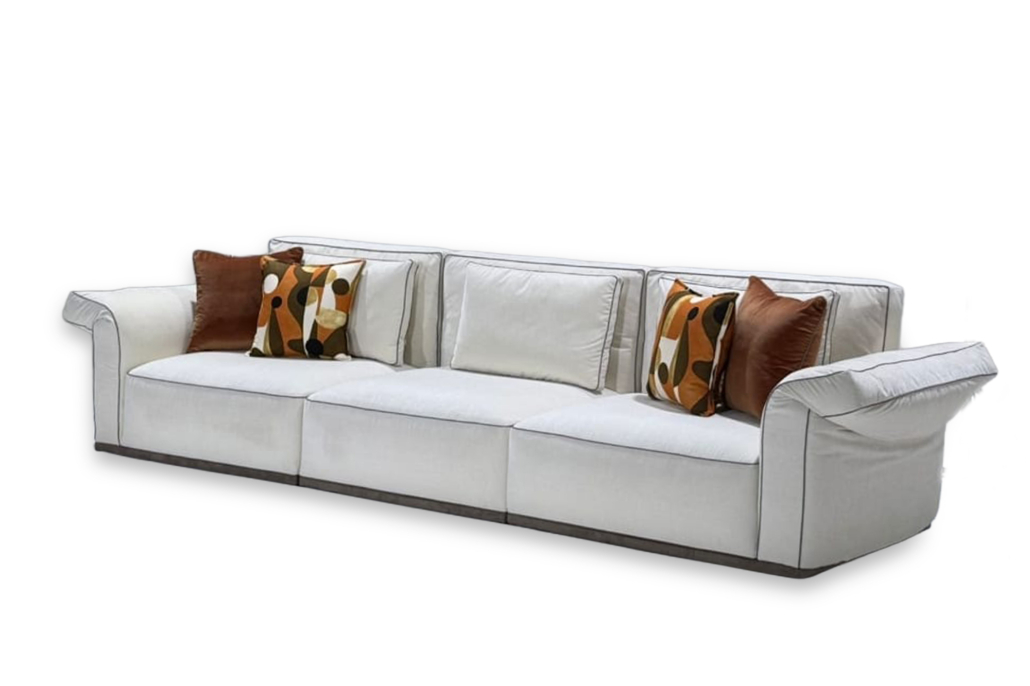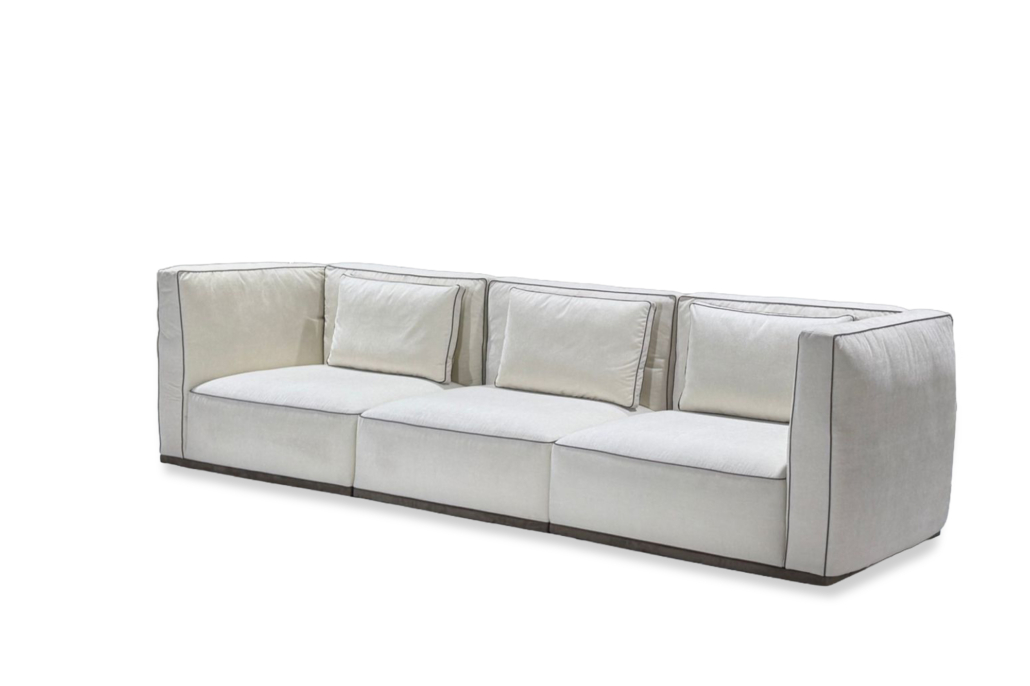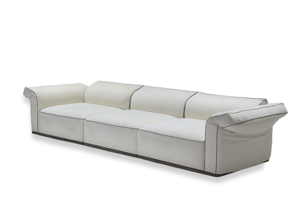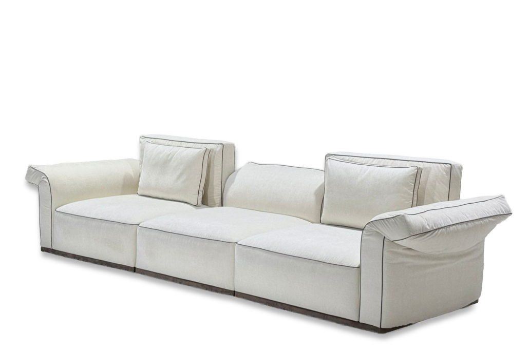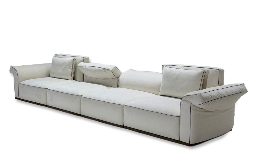 Pensé dans une logique modulaire, Sacha s’adapte facilement aux différentes configurations d’espace, en version linéaire ou en angle. Les coussins de dossier, aux lignes plus définies, apportent un bon maintien tout en conservant un confort agréable. L’assise large invite à un usage quotidien, propice à la détente comme aux moments partagés. L’ensemble propose une lecture claire du design, où fonctionnalité et esthétique se rencontrent avec justesse.