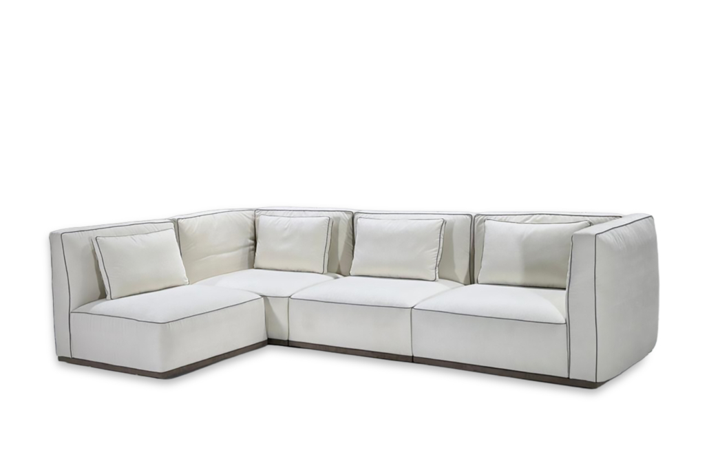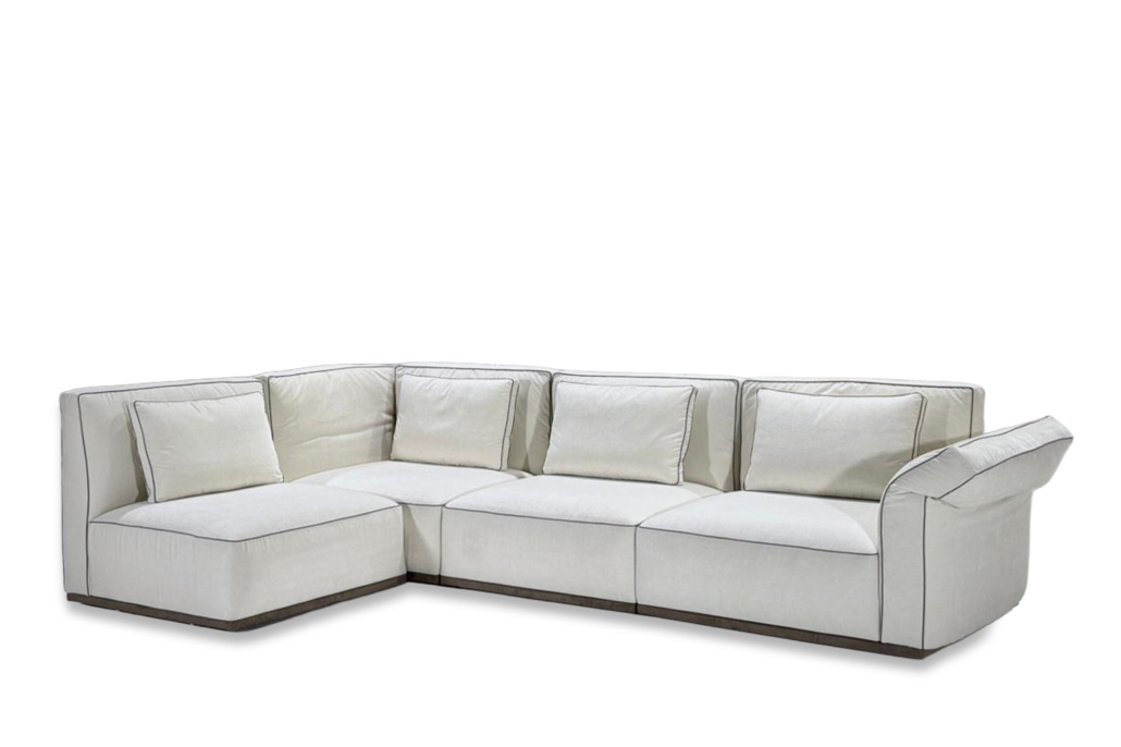 Le canapé d’angle Sacha, affirme une esthétique contemporaine structurée, où la rigueur des lignes rencontre un confort maîtrisé. Son design modulaire, associé à une assise généreuse et à des coussins plus définis, crée un équilibre entre précision architecturale et fonctionnalité. Pensé pour les espaces de vie actuels, il s’adapte avec fluidité aux différentes configurations tout en conservant une présence élégante et affirmée.